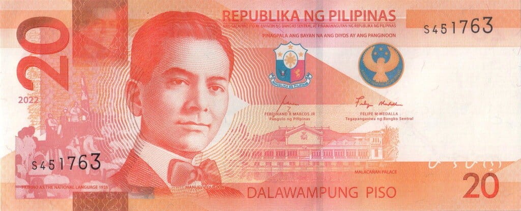 Filipiny 20 piso Łaskun palmowy 2022 P-230a.1