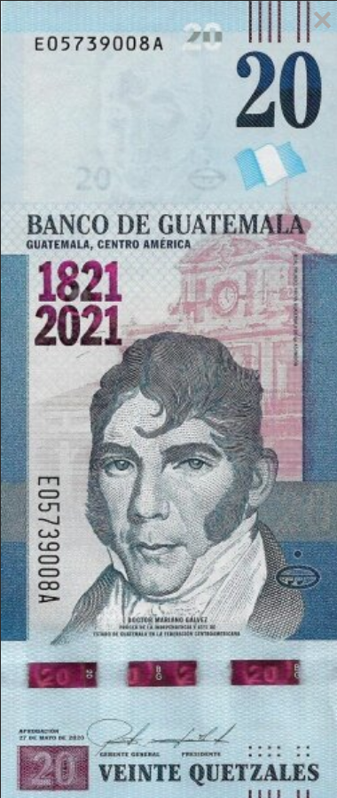 Gwatemala 20 Quetzal 200 lat Niepodległości 2020 P-127