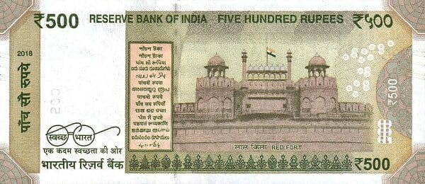 Indie 500 rupii Czerwony Fort 2018 P-114m