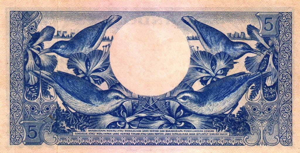 Indonezja 5 rupii Kwiat i ptaki 1959 P-65a.3