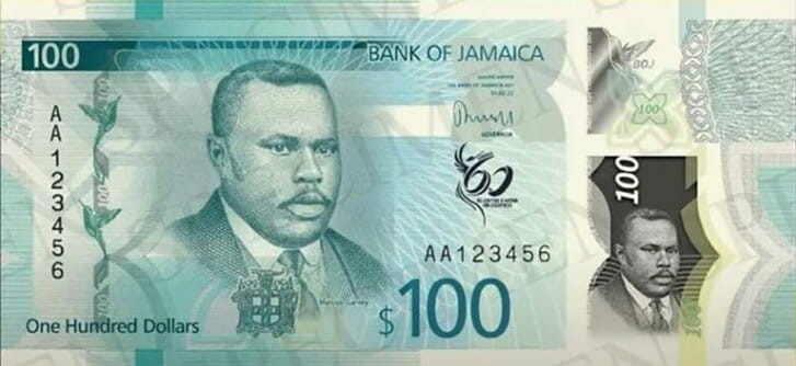 Jamajka 100 dolarów 60 lat niepodległości 2022 P-97
