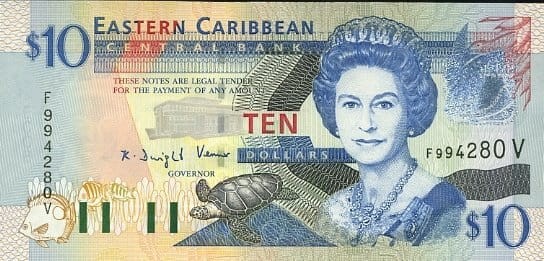 Karaiby Wschodnie 10 $ Żaglowiec Warspite 2003 P-43v